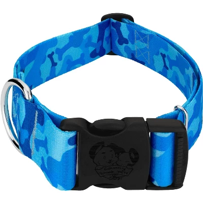 Are you bone tired of all the other camo prints out there? Well, Country Brook Petz has their own ”bad to the bone” design that will compliment your camouflaged pup. Contrasting shades of blue highlight the bone accents perfectly while giving you a unique composition of design.At the heart of this exceptional collar lies our premium polyester webbing, a high-strength and resilient material known for its remarkable durability. Whether your dog is a spirited explorer or a playful companion, this collar can withstand the test of time and keep up with their boundless energy.The sleek and smooth texture of the polyester webbing ensures a gentle touch against your dog’s neck, eliminating any discomfort or irritation. Your loyal companion will revel in the luxurious comfort that this collar provides, allowing them to strut their stuff with unmatched confidence.To further elevate the collar’s functionality, we constructed it with YKK brand buckles, renowned for their exceptional quality and reliability. These buckles are not only stylish but also incredibly secure, giving you peace of mind knowing that your furry friend is always safe and sound.The YKK brand buckles are engineered with precision, featuring a seamless interlocking mechanism that guarantees a secure fit. They are easy to use and offer a hassle-free experience, allowing you to fasten and release the collar with a simple snap effortlessly. Whether you’re preparing for a leisurely stroll or an exciting outdoor adventure, this collar ensures quick and convenient handling.Besides its undeniable elegance, our Deluxe Dog Collar is also equipped with a sturdy welded D-ring for easy leash attachment. This feature guarantees a seamless transition from playtime to outdoor walks, allowing you to maintain control without compromising on style or comfort.Indulge your furry friend in the opulence they deserve with our Deluxe Dog Collar. From the premium polyester webbing to the renowned YKK brand buckles, every aspect of this collar is a testament to superior craftsmanship and unparalleled quality made right here in America. Give your loyal companion the gift of comfort and style, and watch them turn heads wherever they go.