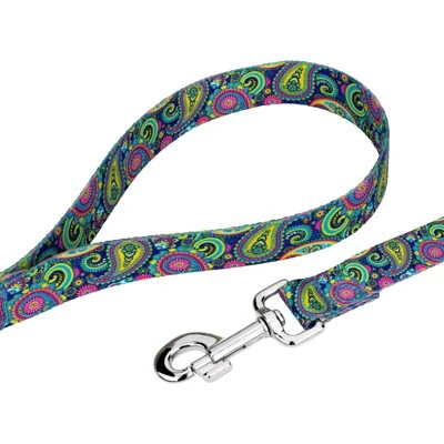 Deluxe Bright Paisley Dog Collar and Leash is here to bring you the traditional print of boho paisley with vibrant colors that spiral throughout. This ornamental, Persian inspired design features a winding floral-like pattern, rippling paisleys, and electrifying colors that will contrast against your dog’s fur. Printed using our colorfast dye, there are no runs or bleeding onto your pupper. Made from superior hardware and webbing, Country Brook Petz’ Bright Paisley Deluxe Dog Collar & Leash will provide you with a sense of ease when using our products.This Bright Paisley collar and leash set are uniquely designed and have a silky smooth polyester loop that slips over your hand, giving you a comfortable grip while walking your pet. Box stitching ensures strength for when your pup pulls against their leash. These collars and leashes are washable, with mild detergent, and dry when laid out.The Extra Small, Mini and Micro are still reliable with a 700 lb. tensile strength, even though they may seem delicate.We know that you want the best for your pets, that’s why we make all of our products here in the United States. Equipped with wide-mouthed, heavy-duty triglides for easy adjustment, and heavy-welded d-rings for your dog’s security. Leashes are constructed with high grade snap hooks and polyester that ensures your puppy won’t break the leash. Walk your pup with confidence knowing that Country Brook Petz has you in mind when creating our products. Style isn’t all we have going for our collars and leashes!Country Brook Design cannot be held responsible for misuse of this product. It is the responsibility of the purchaser to determine the suitability of the product for their use.