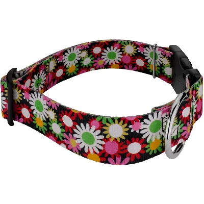From small dainty florals, to bright bold botanicals, this collection has numerous prints just for your pet!At the heart of this exceptional collar lies our premium polyester webbing, a high-strength and resilient material known for its remarkable durability. Whether your dog is a spirited explorer or a playful companion, this collar can withstand the test of time and keep up with their boundless energy.The sleek and smooth texture of the polyester webbing ensures a gentle touch against your dog’s neck, eliminating any discomfort or irritation. Your loyal companion will revel in the luxurious comfort that this collar provides, allowing them to strut their stuff with unmatched confidence.To further elevate the collar’s functionality, we constructed it with YKK brand buckles, renowned for their exceptional quality and reliability. These buckles are not only stylish but also incredibly secure, giving you peace of mind knowing that your furry friend is always safe and sound.The YKK brand buckles are engineered with precision, featuring a seamless interlocking mechanism that guarantees a secure fit. They are easy to use and offer a hassle-free experience, allowing you to fasten and release the collar with a simple snap effortlessly. Whether you’re preparing for a leisurely stroll or an exciting outdoor adventure, this collar ensures quick and convenient handling.Besides its undeniable elegance, our Deluxe Dog Collar is also equipped with a sturdy welded D-ring for easy leash attachment. This feature guarantees a seamless transition from playtime to outdoor walks, allowing you to maintain control without compromising on style or comfort.Indulge your furry friend in the opulence they deserve with our Deluxe Dog Collar. From the premium polyester webbing to the renowned YKK brand buckles, every aspect of this collar is a testament to superior craftsmanship and unparalleled quality made right here in America. Give your loyal companion the gift of comfort and style, and watch them turn heads wherever they go.