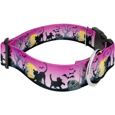 Country Brook Petz’ 1 1/2 Inch Deluxe Dog Collar Halloween Collection is here to put a spell on you. We’ve conjured up our most gruesome designs for this frightful season with your pup in mind! These bewitching patterns are as trendy as they are spooky.At the heart of this exceptional collar lies our premium polyester webbing, a high-strength and resilient material known for its remarkable durability. Whether your dog is a spirited explorer or a playful companion, this collar can withstand the test of time and keep up with their boundless energy.The sleek and smooth texture of the polyester webbing ensures a gentle touch against your dog’s neck, eliminating any discomfort or irritation. Your loyal companion will revel in the luxurious comfort that this collar provides, allowing them to strut their stuff with unmatched confidence.To further elevate the collar’s functionality, we constructed it with YKK brand buckles, renowned for their exceptional quality and reliability. These buckles are not only stylish but also incredibly secure, giving you peace of mind knowing that your furry friend is always safe and sound.The YKK brand buckles are engineered with precision, featuring a seamless interlocking mechanism that guarantees a secure fit. They are easy to use and offer a hassle-free experience, allowing you to fasten and release the collar with a simple snap effortlessly. Whether you’re preparing for a leisurely stroll or an exciting outdoor adventure, this collar ensures quick and convenient handling.Besides its undeniable elegance, our Deluxe Dog Collar is also equipped with a sturdy welded D-ring for easy leash attachment. This feature guarantees a seamless transition from playtime to outdoor walks, allowing you to maintain control without compromising on style or comfort.Indulge your furry friend in the opulence they deserve with our Deluxe Dog Collar. From the premium polyester webbing to the renowned YKK brand buckles, every aspect of this collar is a testament to superior craftsmanship and unparalleled quality made right here in America. Give your loyal companion the gift of comfort and style, and watch them turn heads wherever they go.