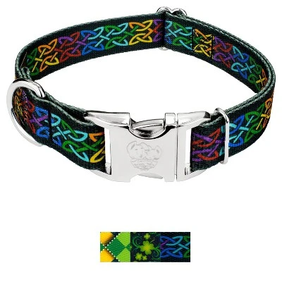 We have your gold at the end of the rainbow with Country Brook Petz’ Irish Pride Collection Premium Dog Collars! These festive prints encaptures the spirit of Irish tradition with beautiful designs. Created using vibrant colors, these prints will have you feeling lucky.Crafted with care and attention to detail, our classy premium line of collars are for canines who need to look fabulous both at home and at the dog park. It starts with the highest quality 100% polyester webbing that is both soft and strong. This means the collar will feel like a hug whenever your dog wears it, but it also provides long-lasting durability to withstand everyday adventures.The collar features a brilliant aluminum side-release buckle with a mirror-like finish, allowing easy and secure fastening. The sturdy welded D-ring provides a convenient attachment point for your dog’s leash, ensuring a safe and controlled walking experience.Country Brook Petz’ premium patterned collars are vibrant, comfortable collars made right here in the U.S.A. Our carefully curated sewing professionals have decades of combined experience and ensure that every collar is meticulously inspected for quality craftsmanship. With an array of eye-catching patterns, you can showcase your dog’s unique personality and style. From trendy florals to playful geometric designs, there’s a pattern to suit every taste and preference.