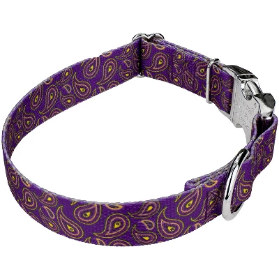 Purple Paisley Premium Dog Collar is to bring you the traditional print of paisley with vivid colors that make everything pop. This ornamental, Persian inspired design features a smooth floral-like pattern, flowing lines, and complimentary colors that will contrast against your applications; this classic composition will be a hot item for all-year-round use. Printed using our colorfast dye, our collars will not run or bleed. Created from superior hardware and webbing, Country Brook Petz’ Purple Paisley Premium Dog Collars will not only provide your pup with a trendy collar, but will give you a sense of ease when using our products.Country Brook Petz’ premium patterned collars are vibrant, comfortable collars made right here in the U.S.A. These collars are constructed using strong polyester webbing, dependable metal side release buckles that feature a brilliant mirror finish, heavy-duty wide-mouthed triglides, and heavy welded D-rings. Our polyester collars are ribbed, soft, and sleek to the touch with a little bit of a sheen. Country Brook makes all their collars after the order has been placed. However, rest assured as your collar will ship within two business days of receiving payment.We want your furbaby to be able to show the world their new collar immediately, so be sure to measure for the right size. You can check this out by using a string, or tape measure, to see where the collar will fit snugly and comfortably on your dog’s neck. These stylish prints work well with both boy and girl puppers.