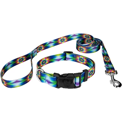 - TIE DYE FLOWERS | This Deluxe Dog Collar & Leash features a glowing floral design in a wave like pattern.